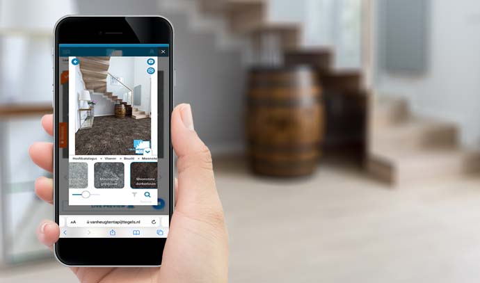 Visualisieren Sie das Cloud im Live-Vorschaumodus . Diese App visualisiert unsere Teppichfliesen auf dem Boden in einem individuellen Foto Ihres Zuhauses oder Büros. Falls verfügbar, können Sie auf die Schaltfläche „Live-Vorschau“ klicken. Sie finden diesen Button unter den Produktbildern dieser Seite.